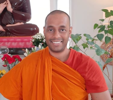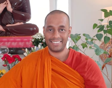 At the age of 35, he renounced lay life to follow the path of a Buddhist monk, undertaking deep study and practice in Buddhist meditation and philosophy under both Sri Lankan and international teachers, while also exploring Vedic and yogic traditions in India.